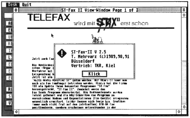 Bild 2: Die Fax-Software von TKR ist sauber programmiert und benutzt GEM-Fenster.