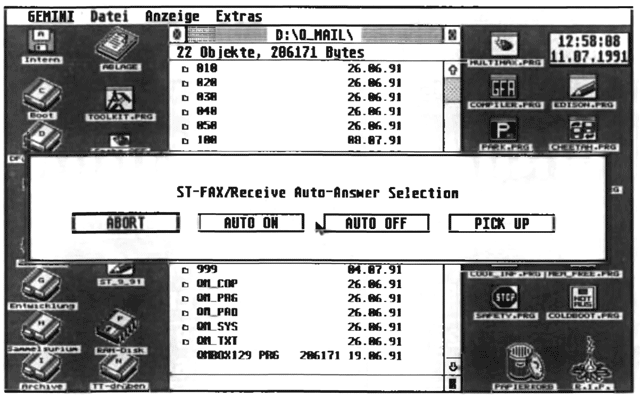 Die wichtigste Neuerung ist ein Accessory, welches in der Lage ist, jederzeit eingehende Faxe automatisch entgegenzunehmen und als spezielle Fax-Datei auf Festplatte oder Diskette abzulegen. Voraussetzung für den Fax-Empfang ist allerdings ein entsprechendes, empfangstaugliches Modem. Hierzu bietet die Firma TKR das Gerät „Phonic Supreme-9624“ an. Dieses Modem bietet alle Möglichkeiten des Fax-Sende- und -Empfangsbetriebs. Dabei arbeitet es mit Übertragungsgeschwindigkeiten bis zu 9600 Baud (Bit/ Sekunde), was dem Fax-Klasse-III-Standard entspricht. Neben dem Fax-Modus kann man natürlich auch „normale“ Datenfernübertragung oder BTX betreiben.