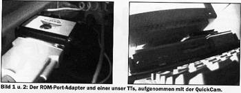In Entwicklung befindet sich die Anpassung der Colour QuickCam von Connectix, diese Kamera bietet 24bit Farbtiefe, bei 640x480 Bildpunkten, sicher für der Einsatz im DTP/EBV-Bereich eine weitere interessante Möglichkeit, um schnell Bilddaten zur Weiterverarbeitung zu einem günstigen Preis erfassen zu können. Diese Lösung soll im Komplettset inkl. ROM-Port-Adapter und Software ca. 580 DM kosten. Selbstverständlich werden wir Sie darüber auf dem laufenden halten.