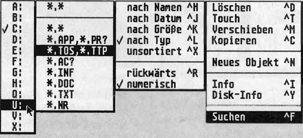 Diese sucht wahlweise im aktuellen Verzeichnis mit all seinen Unterordnern, auf dem aktuellen Laufwerk, oder auf allen dem GEMDOS bekannten Laufwerken.