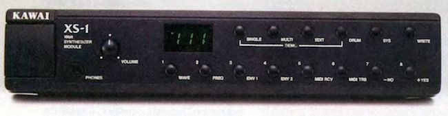 Die Klangerzeugung im XS-1 ist weitestgehend identisch mit der des Kawai K4, d.h. ein Sound setzt sich aus zwei Waves mit nachfolgendem Hüllkurven-Generator zusammen. Auf Filter verzichteten die Kawai Entwickler aus Kostengründen. Singles lassen sich maximal 10-stimmig spielen, für die Drumsounds stehen noch einmal vier weitere Stimmen zur Verfügung. Der XS-1 bietet Speicher für 96 Singles, davon 64 Presets und 32 frei editierbare. Die Programmierung eigener Klänge gelingt aufgrund der überschaubaren Syntheseform recht problemlos, wenn auch die bereits erwähnten Taster und das bescheidene Display nicht optimal sind. Bei Kawai ist für 10 Mark ein PD-Editor für den Spectra erhältlich, der auch mit dem XS-1 zusammenarbeitet.