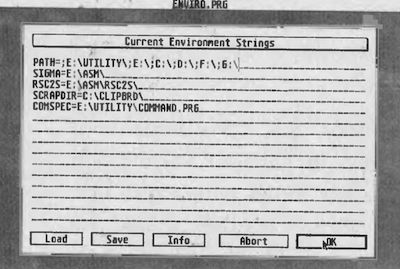 Das Accessory »ENVIRO« setzt von der aktuellen Applikation an abwärts alle P_ENV-Zeiger der Prozeßdeskriptoren. Sogar wenn innerhalb eines Programms, das von einer Shell aufgerufen wurde, diese Strings verändert werden, erfährt der Desktop davon.