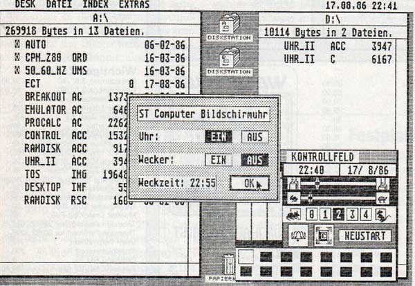 Haben Sie sich auch schon einmal geärgert, daß Sie, um die Uhrzeit zu erfahren, immer das Kontrollfeld aufrufen müssen? Oder haben Sie vielleicht bei der begeisterten Arbeit am Atari einen Termin vergessen? Dann sollten Sie diesen Artikel lesen, der zeigt, wie man die Uhrzeit permanent in den Bildschirm einblenden kann und einen einstellbaren Wecker programmiert.