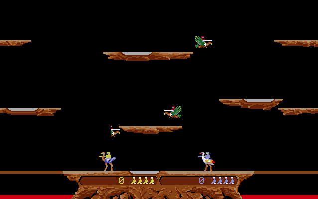 Die Steuerung des Vogelstrauß ist sehr witzig, denn er ist nur durch ständiges Drücken des Feuerknopfes in der Luft zu halten. Ansonsten sinkt er rasch ab, und ehe man sich versieht, ist er der glühenden Lava zu nahe gekommen, oder ein gegnerischer Ritter hat ihn im Zweikampf besiegt.