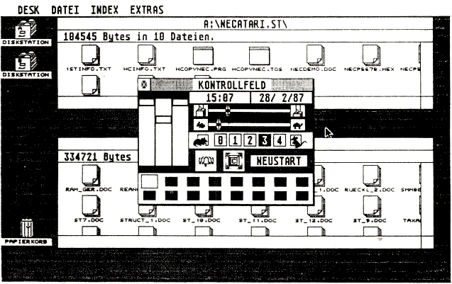In diesem GerĂ€t, das immerhin eine beachtliche GröĂe aufweist, sitzen ein Single-Chip-Rechner und einige weitere Kleinteile. Der Single-Chip Rechner ist ein Bauteil, das aus einem Prozessor, RAM, ROM und je einem Ein-und Ausgabeport besteht. Alles in allem ist es nicht gröĂer als ein normales EPROM. Aber wen interessiert schon das Innenleben - auf die Wirkung kommt es an! Wir nahmen also dieses GerĂ€t und lieĂen es mit vielen ST-Programmen am NEC P6 drucken, die normalerweise keine befriedigende DruckqualitĂ€t erreichen oder sogar ĂŒberhaupt nichts zu Papier brachten. Als erstes die normale ST-Hardcopy (Alternate + Help), die ja mit dem 24-Nadeldrucker ĂŒberhaupt nicht lĂ€uft. Sie funktioniert einwandfrei, nur etwas langsamer als mit einem 9-Nadel-drucker, da der Konverter Zeit zum Umrechnen benötigt. Freilich muĂ man zur QualitĂ€t der Hardcopy auch sagen, daĂ der Softwaretreiber von NEC, der immerhin Public-Domain ist, also nichts kostet, eine bessere QualitĂ€t erreicht als der Hardware-Konverter. Aber die Hardcopy ist ja nur ein Teil des Anwendungsbereiches. Die Hauptanwendungen sind in allen Programmen zu finden, die nur eine normale 8-Bit-Grafik liefern. Der Konverter erkennt, wenn Grafikdaten gesendet werden, wandelt sie um und bringt sie zu Papier. Das bewirkt, daĂ sogar bei gemischter Ausgabe von Text und Grafik eine automatische 'Korrekturâ erfolgt. Bestes Beispiel hierfĂŒr ist Ist Word Plus. Hier zeigt der Konverter ein wirklich gutes Ergebnis. Auch bei Programmen wie EASYDRAW, DEGAS und anderen Grafikprogrammen funktionierte er einwandfrei. Insgesamt zeichnet sich der Druckcode-Konverter durch problemlosen AnschluĂ aus und dadurch, daĂ er wirklich immer funktioniert. Mit einem Preis von 400 DM ist das GerĂ€t nicht gerade billig. Aber in manchen FĂ€llen ist es die einzige Alternative.