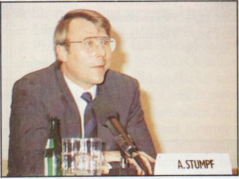 Auch Alwin Stumpf, Geschäftsführer der deutschen ATARI GmbH, hatte einen hervorragenden Jahresabschluß zu berichten. ATARI Deutschland hatte im Jahr 1986 einen Umsatz von DM 141,58 Millionen erreicht. Dieser Umsatz entspricht ungefähr 28 % des gesamten Konzern-Umsatzes. Damit ist die deutsche Sektion einer der wichtigsten Umsatzfaktoren ATARIs. Dieser Umsatz entspricht für 1986 in verkauften Stückzahlen: 40 000 ST Computer der 1 MByte Klasse (520 ST + und 1040 ST) und 33 000 der kleineren Modelle (260 ST und 520 ST/M). Wenn man zu diesen Stückzahlen noch die von 1985 und dem ersten Quartal 1987 hinzuaddiert, so kann man schätzen, daß bis heute ungefähr 120000 ATARI-ST-Rechner verkauft wurden.