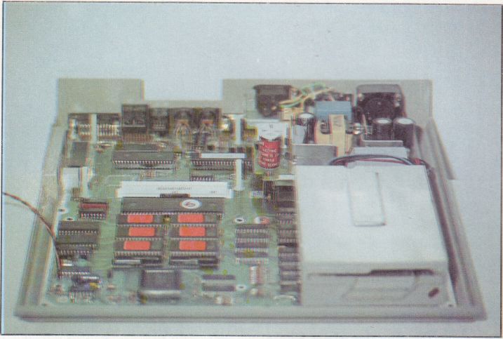 Grundplatine, Floppy (ein doppelseitiges Laufwerk mit 720 KB) und Netzteil wurden in ein kompaktes und gut gestaltetes Gehäuse untergebracht: Der ganze Kabelsalat verschwindet. Auch im Layout wurden Änderungen vorgenommen. Der Hauptspeicher ist beim Mega ST 2 und 4 mit dem 1 Mega Bit-Chip ausgestattet. Zum ersten Mal wurde der Systembus des 68000er (alle Adress-, Daten- und Steuerleitungen) vollständig herausgeführt. Dazu befindet sich neben dem 68000er Prozessor eine Steckleiste. Dieses echte Manko der alten ST-Serie, das mit Sicherheit viele potentielle Käufer abgeschreckt hatte, ist somit behoben. Die Grundplatine wurde mit vier Abstandsbolzen versehen, die, die Möglichkeit bieten, eine Zusatzplatine unterzubringen. Auf der Messe wurde der Mega ST zum Beispiel mit einer typischen und sehr sinnvollen Anwendung für den herausgeführten Bus gezeigt: Eine kleine Platine mit dem Floating-Point-Coprozessor 68881, der alle mathematischen Prozesse enorm beschleunigt, wenn er entsprechend programmiert wird, wurde mit dem Systembus des ATARI-Rechners gekoppelt. Diese Karte, die nicht zum Lieferumfang gehört, wird für weniger als DM 1000,- gleichzeitig mit der Einführung der Mega-Rechner zu erhalten sein. Der Coprozessor wird mit einer Taktfrequenz von 20 MHz betrieben. Aber auch alle anderen denkraren Erweiterungen, die den Bus des ST benötigen, können in Zukunft als Zusatzplatine leicht eingebaut werden.