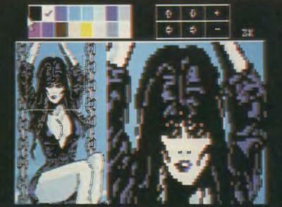 ...können die verschiedenen Auflösungsformate untereinander getauscht werden. Diese Aufgabe übernimmt DEGAS ELITE automatisch, wenn ein Bild eingeladen werden soll, das nicht die Auflösung hat, in der man gerade arbeitet. Die Konvertierung geht recht schnell und die erzielten Resultate sind im allgemeinen ziemlich gut.