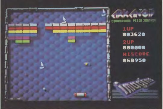 Der Name wird nur Eingeweihten etwas sagen, denn ARKANOID ist die Umsetzung eines beliebten Spielhallenautomaten. Die Grundidee des Spiels geht geht auf 'Blockbuster' oder auch 'Break Out' zurück, allerdings hat hier eine enorme Wandlung stattgefunden. Wie schon in der Urfassung wird der 'Energieball' immer noch mit einem horizontal bewegbaren Schläger abgelenkt. Er trifft dann auf einen Stein der Mauer und löst diesen auf. Durch ständiges Ablenken des Balls in die verschiedenen Richtungen wird somit die Mauer abgebaut, und der nächste Level ist erreicht.