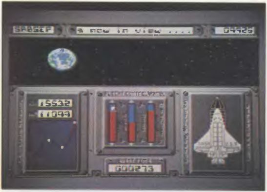 Wollten Sie nicht schon immer der Kommandant eines SPACE SHUTTLES sein? - jetzt haben Sie die Gelegenheit dazu. Ein defekter Kommunikations-Satellit soll aus dem Weltraum geborgen werden, doch bis dorthin ist es ein weiter Weg. Ihre Aufgaben und Einsatzgebiete sind verschiedenster Natur. Als erstes muß der Abflugpunkt bestimmt werden. Dabei werden ebenfalls die Wetterbedingungen (Wolkenbildung, Windstärke, Richtung) für den Start eingestellt.