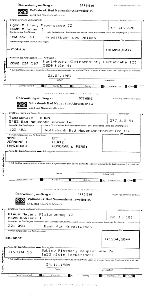 - Der Ausdruck von einheitlichen Überweisungsvordrucken soll möglich sein;
