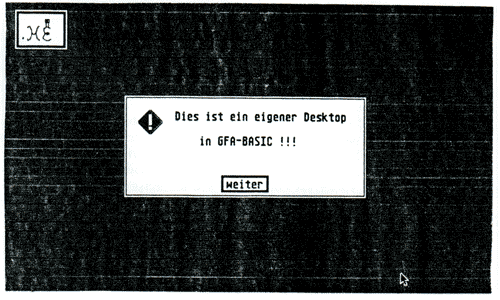 Alert 1,"Dies ist ein eigener Desktop! | in GFA-BASIC !!",1,"weiter",A