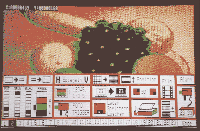 Wie oben, jedoch der höherwertige Teil der Bildinformation (Bitplane 1). Beide Register sind so organisiert, daß sie direkt mit dem Bildspeicher des Atari korrespondieren, und deshalb nur zum richtigen Zeitpunkt an die richtige Stelle des Bildspeichers kopiert werden müssen, damit auf dem Monitor das digitalisierte Abbild des Videosignals entsteht.