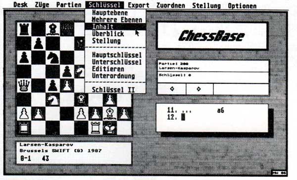 In welcher Disziplin sind die bundesdeutsche und die englische Nationalmannschaft zu Trainingszwecken mit Atari ST ausgerüstet? Ganz zu schweigen vom amtierenden Weltmeister! Was bewegt ältere russische Emigranten, sich mit Dropdown-Menüs und Dialogboxen auseinander-zusetzen, und warum schwärmen kubanische Bohemiens von einer Harddisk? Die Antwort heißt "ChessBase" und ist eine hochspezialisierte Datenbank für Schachpartien, die in Bonn entwickelt wurde.