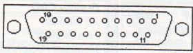 Das ATARI-Computer-System-Interface ist mit einer 19-poligen D-Subminiatur-Buchse ausgestattet. Von ATARI werden daran z.Zt. die Festplattenlaufwerke und der Laserdrucker angeschlossen. In naher Zukunft wird wohl noch der CD-ROM-Spieler dazukommen. Das obige Anschlußbild zeigt die Draufsicht auf die Buchse am Computer bzw. an den Peripheriegeräten. Die Pins sind im einzelnen wie folgt belegt: