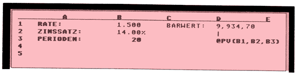 PV = Rate * ((1 - (1+Zinssatz)n)/Zinssatz)