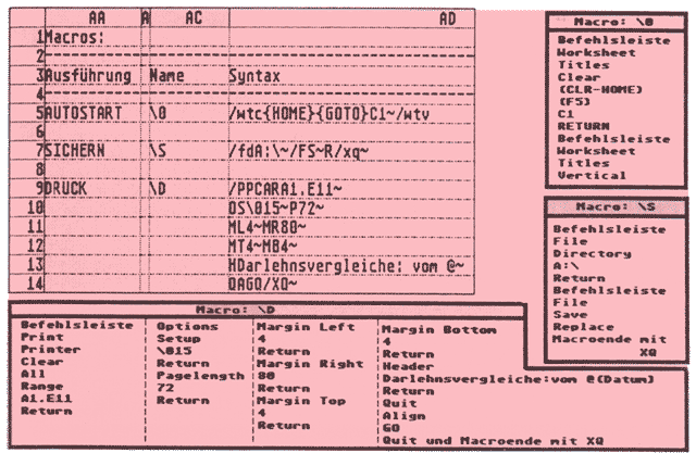 Das Abspeichem unseres Arbeitsblattes kann jetzt auch mit dem direkten Macroaufruf: TASTE ALT+S ausgeführt werden. Hat doch ganz prima geklappt! Nun noch unser Ausdruck (auf IBM-/EPSON-kompatiblen Druckern) mit dem Macroaufruf: TASTE ALT+D.