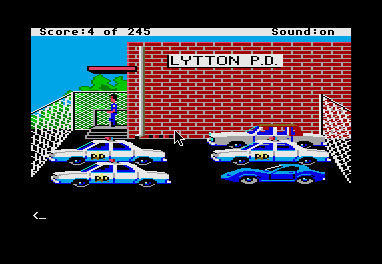 Bei der Polizei geht nämlich alle geordnet und diszipliniert zu. Wer da aus der Reihe tanzt, muß mit einem abrupten Spielende rechnen. Auf einem Tisch im Konferenzraum liegt eine Zeitung. Diese ist nützlich, um Informationen über die Geschehnisse in der Stadt zu bekommen. Nach einigen Minuten Zeitunglesen marschieren die ersten Kollegen in den Raum und nehmen an den Tischen Platz. Wenig später tritt auch Sonnys Vorgesetzter ein. Alle Personen, denen Sonny im Spiel begegnet, sind animiert und haben einige Persönlichkeiten und somit eine bestimmte Bedeutung für den weiteren Spielverlauf. Die vielen Einrichtungen des Reviers wie Ermittlungscomputer, Funkanlage und Schreibmaschine werden zunächst nicht benötigt. Sonny fischt sich die Schlüssel vom Schlüsselboard und holt sich aus seinem Umkleideschrank Pistole, Notizblock, Munition und andere wichtige Gegenstände, die man als Streifenpolizist benötigt. Dann kann der Streifendienst beginnen. Man geht aus dem Gebäude zum Fuhrpark. Dort stehen einige Streifenwagen, aber auch Sonnys Privatwagen. Bevor man mit "drive car" einen Streifenwagen in Gang setzt, muß man zunächst einmal den Wagen überprüfen. Nachdem man um das Auto herumgelaufen ist und mehrmals "check car" eingegeben hat, setzt man sich ins Auto und fährt los. Der Computer fordert den Spieler auf, die zweite von drei Disketten in den Drive zu schieben. Hat man der Anweisung Folge geleistet, wechselt das Szenario. Man sieht nun die Stadt Lytton aus der Vogelperspektive. Einen kleinen Strich gilt es überein Straßennetz zu steuern. Mit Hilfe von Funkcodes, die in der komplexen Anleitung aufgeführt sind, kann man in Kommunikation mit seinen Kollegen treten. Falls irgendwo ein Überfall stattfinden sollte, werden Sie durch geheime Funkcodes instruiert. Mit dem Joystick in der Hand steuert man über das Straßensystem, das sich über mehrere Bildschirme ausdehnt. Zur besseren Orientierung liegt der Verpackung ein Stadtplan bei. Die ganze Zeit mit einem Strich über einen Straßensystem zu huschen, wäre natürlich langweilig. Selbstverständlich besteht die Möglichkeit, den Wagen zu parken, diverse Gebäude zu betreten und sich dort ein bißchen umzusehen. Wenn man Zeuge einer Straftat geworden ist oder verdächtige Personenfestgenommen hat, kann man sie verhaften und zur Wache bringen.