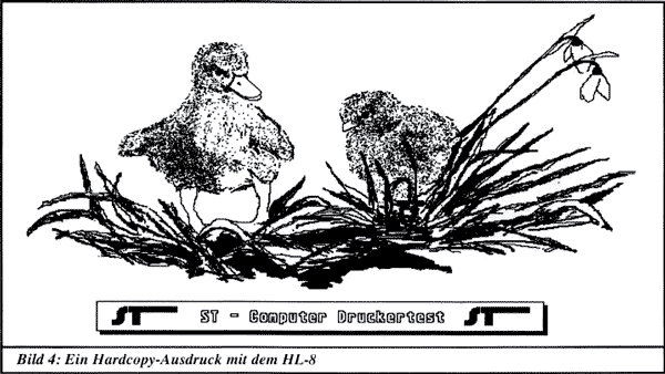 Beginnen wir aber mit wichtigeren Dingen. Ich habe den Drucker wenig ruhen lassen. Zuerst einmal muĂte er eine Diplomarbeit drucken, insgesamt einige hundert Druckseiten. Das Druckprogramm: Signum II. Kein einziger Papierstau. völlig problemloses Arbeiten. Im weiteren Verlauf der Woche war dann eine ganze Reihe von Listings an der Reihe, aus Editoren, Desktop. lst_Word usw. Keine Probleme. SchlieĂlich der HĂ€rtetest: BriefumschlĂ€ge, Overheadfo-lien. Klaglos, keine Probleme. Mehr als eine 500-Blatt-Packung Papier habe ich verdruckt, ohne einen einzigen Papierstau. Das spricht wahrlich fĂŒr die QualitĂ€t des Druckwerkes des HL-8. Auch mit schwerem, hochwertigen Papier gibt es keine Schwierigkeiten. Bei Ă€hnlichen Druckarbeiten mit dem ATARI-Laser hatte ich ungefĂ€hr bei jeder dritten Seite einen Papierstau. Allerdings ist unser Redaktionslaser auch ein âSilberne-Zitroneâ-Exemplar; kein anderer mir bekannter Besitzer eines ATARI-Lasers hat derartig viel Ărger mit seinem GerĂ€t. Aber auch den Vergleich mit anderen Konkurrenten muĂ der HL-8 in Sachen ZuverlĂ€ssigkeit nicht scheuen.