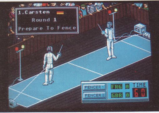 “Summer Olympiad" von “Tynesoft” begrüßt den olympiabegeisterten Computerspieler mit einer herrlichen Eröffnungszeremonie im vollbesetzten Stadion. Schnappen Sie sich einen Joystick, und den olympischen Spielen im Wohnzimmer steht nichts mehr im Wege. Zunächst möchte der Computer jedoch Namen und Anzahl der Spieler wissen. Bis zu sechs Olympioniken können um die Medaillen kämpfen. Tontaubenschießen, Dreisprung, Fechten. Turmspringen, und Hürdenlauf stehen als Wettkampfdisziplin auf dem Programm. In der ersten Disziplin, dem Tontaubenschießen, steuern Sie per Joystick oder Maus ein Fadenkreuz über den Bildschirm und müssen versuchen, vorbeifliegende Scheiben zu treffen. Grafisch ist diese Disziplin vortrefflich dargestellt. Auf dem Bildschirm sehen Sie einen Schützen, der sein Gewehr dahin dreht, wohin das Fadenkreuz bewegt wird. Zielen Sie gut. Für jede Scheibe steht nur ein Schuß zur Verfügung. Da muß man fix sein, um die Scheiben zu treffen. Noch hektischer geht es beim Dreisprung zu. Durch wildes rütteln am Joystick nimmt der Athlet Anlauf. An der Absprunglinie macht er nach einem Druck auf den Feuerknopf drei Sprünge. Die gesprungene Distanz wird gemessen und in Form von Punkten gutgeschrieben. Das Florett schwingen Sie in der dritten Disziplin, dem Fechten. Schnelle Reaktionen sind gefragt, da nur eine Berührung des gegnerischen Floretts reicht, um Minuspunkte zu erhalten. Mit Hilfe des Joysticks leiten Sie verschiedene Defensiv- und Angriffstaktiken ein. Ein rascher Tritt nach vorn oder zurück, eine Parade oder ein gekonnter Angriffsschritt, helfen Ihnen, die Goldmedaille zu erfechten. Ins kühle Naß geht es beim Turmspringen. Fingerspitzengefühl und ein gutes Augenmaß sind für den Springer von Nöten. Klatscht der Springer nur trudelnd ins Wasser und sieht das Ganze eher wie ein Absturz und nicht wie ein Sprung aus, geizt der ST mit Punkten. Geschickte Sprungakrobaten verstehen, aus Links- und Rechtsdrehungen, Salti und Hechtsprüngen, Punkte zu gewinnen. Beim Hürdenlauf heißt es, den Läufer mittels Rütteln am Joystick auf Trab zu bringen und ihn im richtigen Moment per Knopfdruck über die Hürde springen zu lassen. Bemerkenswert ist die Perspektive des Läufers: Sie sehen das Ganze nicht wie üblich von der Seite, sondern aus der Läufersicht. Da kommt Olympiafieber auf. Grafisch fiel “Summer Olympiad” sehr angenehm auf. Während des Ladens einer Disziplin zeigt der Computer ein hervorragend gezeichnetes Bild, passend zur Sportart. Die Grafik der einzelnen Disziplinen braucht sich auch nicht zu verstecken. Farbenfrohe und detailreiche Grafiken unterhalten das Auge. Sogar das Scrolling ist gut gelungen -butterweich! Tynesoft hat bei der Grafik Wert auf die Details gelegt. So sind alle Athleten, aber auch die Zuschauer hervorragend animiert. Beim Fechten beispielsweise sind die Zuschauer lustig in Szene gesetzt. Sie fotografieren, essen und klatschen Beifall für die Leistungen der Athleten. Beifall hat Tynesoft für den Sound allerdings nicht verdient. Zu Beginn wird zwar eine tolle Titelmelodie gespielt, während des Spiels ist dagegen kaum etwas zu hören. Wenn man einmal von den Mängeln der Sounduntermalung absieht, hat Tynesoft jedoch eine ideale Ergänzung zu “Winter Olympiad” geschaffen, die für Wohnzimmersportler genausogut geeignet ist wie für Sportskanonen. Ich kann da nur sagen: “I declare the Games for open!”
