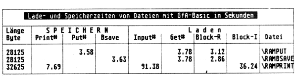 PRINT "Lade- und Speicherzeiten von Dateien mit GfA-Basic in Sekunden ";ra$