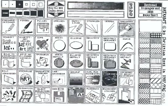 Was war der Freak zu Beginn des ATARI ST-Zeitalters doch froh, wenn er wenigstens ein paar Linien mühsam mit dem mitgelieferten ST-BASIC auf den Bildschirm brachte. Zu jener Zeit war ein komfortables Malprogramm noch Mangelware. Dies erkannten die Softwarehäuser und reagierten natürlich binnen kürzester Zeit darauf. Als die ersten fleißigen Grafikhelfer erschienen, hatten sie einen entscheidenden Nachteil: anfangs konnte man sie wegen der Pseudo-Monopolstellung der Hersteller kaum bezahlen. Am glücklichsten war damals sicher der Besitzer des Farbmonitors SM 1224. Schließlich konnte er das Public Domain-Programm “NEOCHROME” zum Nulltarif beziehen und so seinen Geldbeutel schonen. Ebenso spärlich wie der Preis waren auch die Funktionen: Ein paar Linien und Rechtecke, vielleicht gerade noch ein Kreis. An das Niveau, das man von heutiger Software gewohnt ist (Ellipsenausschnitte, beliebige Zeichensätze, Lasso etc.), war keinesfalls zu denken.