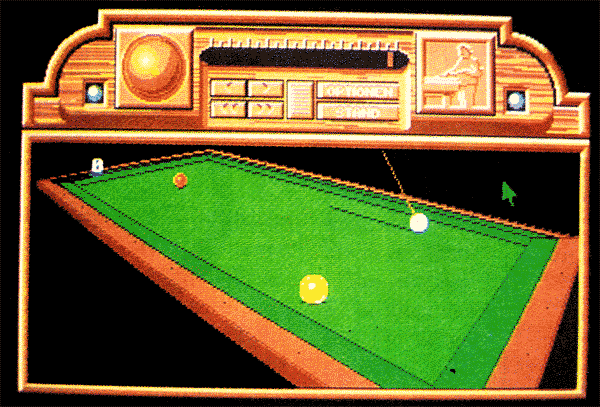 Um Mißverständnissen vorzubeugen: Es handelt sich bei “Billard Simulator” von “Ere Informatique” nicht um eine Simulation des Pool Billard-Spiels, wie es auch in den meisten Kneipen anzutreffen ist. Nein, Ziel von Eres Billardvariante ist es, mit einer Kugel und einem Stoß zwei andere Kugeln zu treffen. Zu Beginn des Spiels hat der Spieler die Möglichkeit, das Game seinen Wünschen anzupassen: Es stehen drei Queuetypen zur Wahl. 1 oder 2 Spieler können sich eine Billardpartie liefern, 2D- oder 3D-Darstellung sowie unterschiedliche Schwerkräfte sind ebenfalls vor Beginn des Spiels einstellbar.