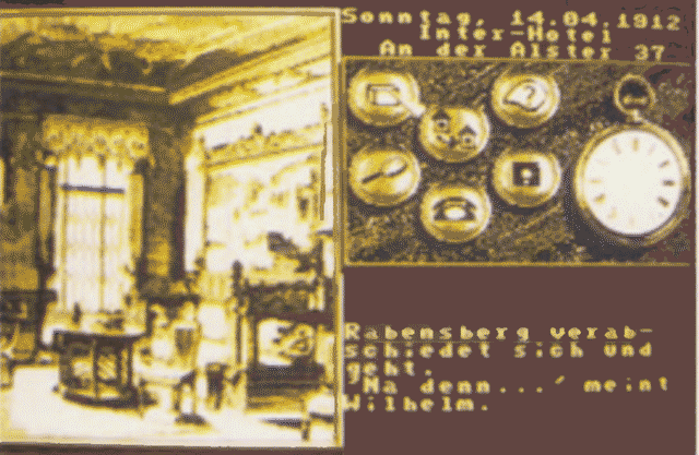 Detektive leben gefährlich. Sie werden in Schießereien verwickelt und müssen andauernd um ihr Leben fürchten. Wer sich nicht ständig in Lebensgefahr begeben und trotzdem Detektivarbeit leisten möchte, sollte sich einmal “Bozuma”, von "Time Warp Software” ansehen. Das neue Kriminaladventure versetzt Sie ins Jahr 1912. Ort des Szenarios ist Hamburg. Auf einem Zimmer im Inter-Hotel befinden sich ein cleverer Anwalt, der auch schon beim Lösen einiger Kriminalfälle sehr erfolgreich war, und sein getreuer Butler Wilhelm. Plötzlich klingelt das Telefon. Der Portier kündigt einen Herrn Rabenberg an, der dringend den cleveren Anwalt sprechen möchte: Vor etwa 30 Jahren sei Rabenbergs Vater zu einer Kolonisationsexpedition nach Kamerun aufgebrochen. Auf einem Erkundungsgang in einem Höhlengrab stieß er auf eine Mumie, die er mitnahm, um sie in einem Museum in Deutschland der Öffentlichkeit zugänglich zu machen. Die Eingeborenen weigerten sich jedoch, die Mumie zu tragen, da sie angeblich verflucht sei. Tatsächlich, wenige Tage später erkrankten die Träger an Malaria. Als man sie nach Deutschland verschiffte und in ein Museum brachte, wurde sie in einer Nacht-und-Nebelaktion von Kunstdieben gestohlen. Seitdem ist sie spurlos verschwunden. Rabensberg beauftragt Sie und Ihren getreuen Butler, die Mumie wiederzufinden. da sie für ihn ein schönes Erinnerungsstück an seinen Vater darstellt. Mit dieser Hintergrundgeschichte wird der Spieler in die Handlung eingeführt. Dann beginnt das Detektivabenteuer. Mittels Iconsteuerung können Sie den Helden dazu veranlassen, Gegenstände zu untersuchen oder aufzusammeln. Natürlich sind auch Verhöre möglich. Wichtige Aussagen können sogar in einem Notizblock festgehalten werden. Sie müssen Ihren ganzen Scharfsinn und Ihre Beobachtungsgabe einsetzen. um die Mumie zu finden. Während der Mumiensuche werden sie übrigens in ein anderes Verbrechen verwickelt, aber schauen Sie selbst. Für Observationsarbeiten besteht die Möglichkeit, einen anderen Detektiv zu engagieren, der Ihnen lästige Routinearbeiten abnimmt.
