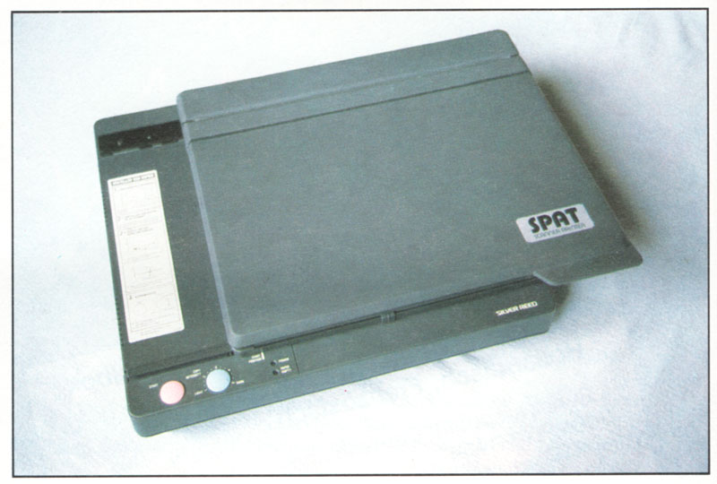 Wir haben den âSPATâ-Scanner/-Printer/-Kopierer der Firma Silver Reed genau unter die Lupe genommen und fĂŒr Sie getestet. Hierbei handelt es sich um einen âFlachbettscannerâ. Die Vorlage wird flach auf die Glasscheibe eines beweglichen âSchlittensâ gelegt und dann abgetastet. Unser Testmodell besitzt eine AuflagegröĂe von 32 mal 22 cm. Abtasten kann man geringfĂŒgig weniger als die GröĂe eines DIN A4-Blattes. etwa 28,2 cm mal 20,4 cm. Es fehlen also in der LĂ€nge rund 1,5 cm und in der Breite 0,6 cm. Der Silver Reed-Scanner tastet - ebenso wie die meisten Fotokopierer - mit seinem âAugeâ, einem CCD-Bildsensor, die Vorlage zeilenweise ab. Hierbei kann er 200x200 dpi (dpi. engl.: dots per inch = Punkte pro Zoll bzw. 2,54 cm) âsehen". Rechnet man diese Auflösung in Bildpunkte um, so besteht eine DIN A4-Seite fĂŒr Scanner und Computer aus mehr als 3,8 Millionen einzelner Punkte. Klar, daĂ der Computer hierfĂŒr einiges an Speicher âverbrĂ€tâ: Pro eingelesener Seite werden 463.088 Byte benötigt. Daher lohnt sich der Scanner nur fĂŒr Besitzer von ATARI ST-GerĂ€ten, die mindestens ein Megabyte Arbeitsspeicher besitzen. Zum Silver Reed-SPAT werden âserienmĂ€Ăigâ drei Programme mitgeliefert, die das Scannen und/oder Ausdrucken möglich machen. Hierbei handelt es sich um den âPIC GEM READER (PREADER)â und um âSPATâ; auĂerdem wird dem Benutzer mit âHCOPYâ noch ein Treiber an die Hand gegeben, der es erlaubt. Hardcopies vom aktuellen Bildschirm zu erstellen. Gegen eine geringe GebĂŒhr, die unter 50 Mark liegen soll, gibt es bei Silver Reed auch ein Programm namens âSPAT Laborâ, mit dem man zwei Bilder im Speicher halten und zum Beispiel ĂŒberlagern kann. AuĂerdem stehen einige schöne Zusatzfunktionen zur VerfĂŒgung.