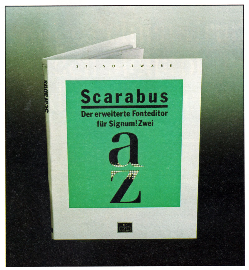 Bei SCARABUS 2.0 handelt es sich um die neue Version des "erweiterten Fonteditors" für das Text Verarbeitungsprogramm SIGNUM!, über das ich wegen seiner Beliebtheit auf dem ATARI ST keine Worte verlieren muß. Daß die SIGNUM!-Anwender sehr arbeitsam sind, was das Fonterstellen angeht, beweisen die inzwischen über 1000 SIGNUM!-Fonts. Das neue Textverarbeitungsprogramm SCRIPT derselben Softwarefirma Application Systems kann die SIGNUM!-Fonts ebenfalls verwenden (256! gleichzeitig), weshalb sich das Anwendungsgebiet von SCARABUS nun auch auf SCRIPT erstreckt.