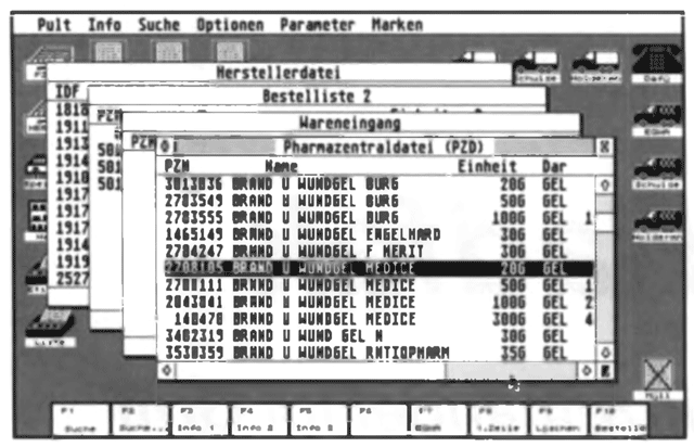 Der Clou bei der Bestellung: Man nimmt die Bestelliste, schiebt sie auf das Modem-Icon und bestellt so automatisch. Das Modem wählt und schickt die Bestellung ab; der Apotheker muß eigentlich gar nichts mehr machen, denn seine Arbeit hat der ST übernommen.