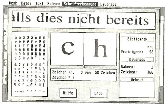 Bereits im Heft 5/89 der ST-Computer wurde mit dem Programm AUGUR ausführlich eine neue Anwendungsebene für den ATARI ST vorgestellt: die Texterkennung. In diesem neuen und sehr schnell fortschreitenden Marktsegment tummeln sich mittlerweile einige Mitbewerber. Das High-Tech-Forschungsinstitut ICD prognostiziert für die Jahre bis 2000 eine durchschnittliche Steigerung von ca. 30% jährlich im Marktvolumen. Die Entwicklung in maßgeblicher Zusammenarbeit mit der „Eidgenössischen Technischen Hochschule Zürich“ darf aber behaupten, die erste für den ATARI ST gewesen zu sein.