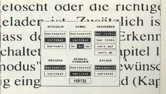 AUGUR 1.5 wird wie bisher in Form eines ROM-Port-Steckers geliefert. Der Programmstart erfolgt auch von dort. Das bringt einerseits wesentliche Vorteile bezüglich Funktionssicherheit und Programmschnelligkeit, aber auch den Nachteil, daß keine Kopie angefertigt werden kann. Bedauerlicherweise ist dieses Pro gramm deswegen für Hand-Scanner, die ebenfalls den ROM-Port benutzen, nicht erreichbar. Es muß noch immer der Umweg des Bildes vom Hand-Scanner in ein Bildprogramm, dann auf Diskette und nach ROM-Port-Wechse I z wi sehen Scanner und AUGUR-Modul wieder von Diskette herunter in AUGUR in Kauf genommen werden - leider.