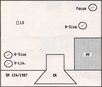 Ăber die genaue Anzahl der verschiedenen AusfĂŒhrungen des SM 124 kann der Autor - wie andere vor ihm - keine genauen Angaben machen. Die folgenden ErlĂ€uterungen beziehen sich auf zwei Monitormodelle, die weiterhin kurz als (87) bzw (88) bezeichnet werden. Bereits bei diesen Modellen bestehen erhebliche Unterschiede in der Anordnung der Bauteile (siehe Bild 2/3). Bei Model! â87â sollte mit noch gröĂerer Vorsicht gearbeitet werden, da die Einstellregler hier z.T. sehr unzugĂ€nglich angeordnet sind!