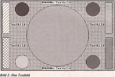 Die DurchfĂŒhrung der verschiedenen Arbeitsschritte wird dabei durch den Einsatz eines programmierten âTestbildesâ erleichtert. Die Erzeugung dieses Testbilds ĂŒbernimmt eine kleine Routine in OMICRON-BASIC (siehe Listing):