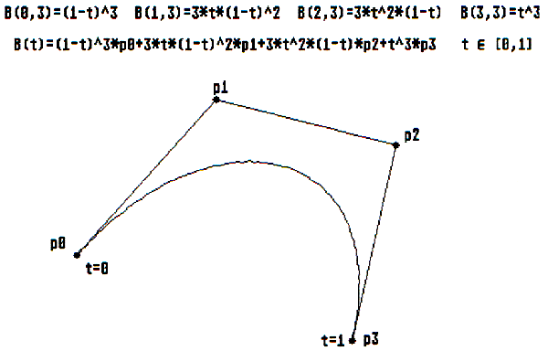 Dieses Verfahren ermöglicht es, sogenannte Freiformkurven zwischen zwei Punkten zu ziehen, deren Verlauf durch einige Führungspunkte festgelegt wird, durch welche aber die Kurve, im Gegensatz zu Spline-Kurven [1], nicht notwendigerweise gehen muß.
