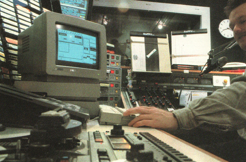 Der Atari ST im Studiobetrieb. Rechts im Bild die Jingle-Maschinen, für Stationssignete und Zeitansagen.