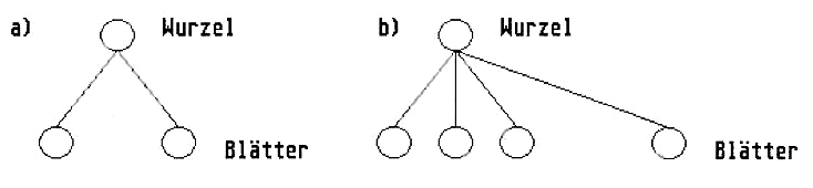 Bild 1a: BinÀrer Baum mit 2 Söhnen, Bild 1b: n-Àrer Baum mit n Söhnen