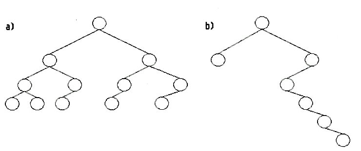 Bild 2a: ausgeglichener binÀrer Baum, Bild 2b: degenerierter Baum