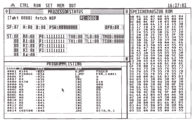 Abgerundet wird die Entwicklungsumgebung durch einen Makro-Rekorder für Tastatur- und Menübefehle. Die Entwicklungsumgebung ist erhältlich für die Controller 8031/51, 8032/52, 80515/535, 80517/537.