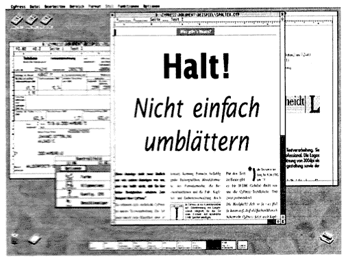 A.Stumpf: Das ist richtig, hier mußten wir einfach einen Schnitt machen. Wir sehen die Einführung von MultiTOS als eine Art Reinigungsprozeß. 1985 konnten wir keine Richtlinien aufstellen, wie z.B. Apple das getan hat und tut. Das hätte unseren Einstieg am Markt sehr erschwert, wenn nicht verhindert. Denn unter diesen Voraussetzungen wären Programme wie Signum! gar nicht erst entstanden. Heute sieht das natürlich anders aus, obwohl unser MultiTOS auch einen Single-Mode besitzen wird, in dem dann kritische Programme einzeln laufen können.