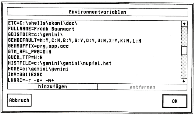 ...des Systems, die natürlich auch per Kommandozeile möglich ist, übernimmt normalerweise eine GEM-Oberfläche mit integriertem Editor, welche je nach RAM-Ausbau Programmteile resident halten kann.