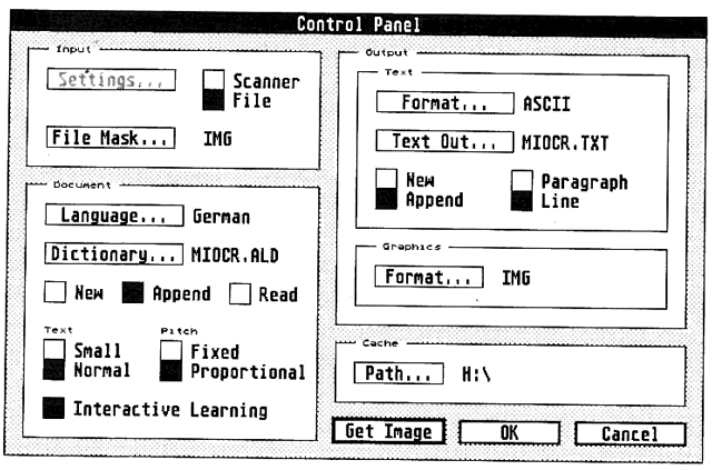 Ungewöhnlich ist, daß man keinen Einblick in und evtl. Einfluß auf die Wörterbücher nehmen kann. Während andere Texterkennungsprogramme sehr stolz die erkannten Zeichen in einer Tabelle präsentieren, bleibt bei MIGRAPH OCR vieles im Verborgenen. Ist ja auch einleuchtend, daß man Formeln und Merkmale, in die die Buchstaben verwandelt sind, schlecht anschaulich darstellen kann, aber die sogenannten ‘linguistischen' Grundlagen (Ausnahmebibliothek) hätte man durchaus offenlegen können.
