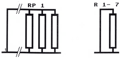 RP 1: 3,3 kΩ "Widerstandsnetzwerk" aus 3 Einzelwiderständen