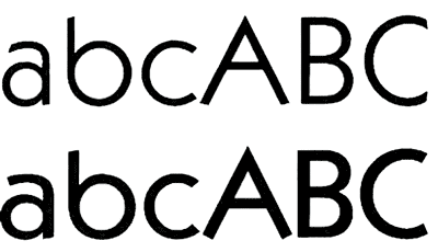 Charakteristisch für den Originalschnitt der Kabel sind zum Beispiel die schrägen Strichenden. Auch die preiswerte „Kabel"-Version verfügt natürlich über dieses wichtige, den Schriftcharakter bestimmende Detail - nur leider nicht in allen Zeichen! Schon auf dieser oberflächlichen Betrachtungsebene kann man also nicht mehr von „identischen" Schriften sprechen, obwohl das durch den gleichen Namen suggeriert wird.
