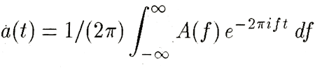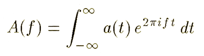 Eine Funktion wird in eine Funktion der Frequenz transformiert. Dabei ist A(f) die Funktion der Frequenz, a(t) eine Funktion der Zeit, e die Basis des natürlichen Logarithmus, i die imaginäre Einheit die Frequenz und t die Zeit. Mit der inversen Fouriertransformation kann man eine Frequenzfunktion wieder in die Zeitfunktion zurücktransformieren: