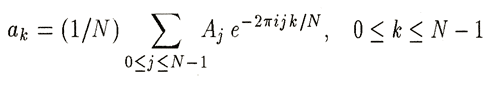 Feider laden die beiden Formeln nicht besonders zum Nachprogrammieren ein, doch wir haben Glück, es gibt auch eine computergerechte Schreibweise, die diskrete Fouriertransformation. Sie transformiert genau N Meßwerte in ein Spektrum von N Koeffizienten: