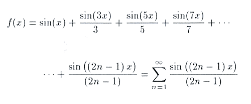 was wir also noch sehen, sind Schwingungen am 3fachen, 5fa-chen, 7fachen, etc. der Grundfrequenz mit einem Drittel, Fünftel, Siebtel, etc. ihrer Intensität (Amplitude).