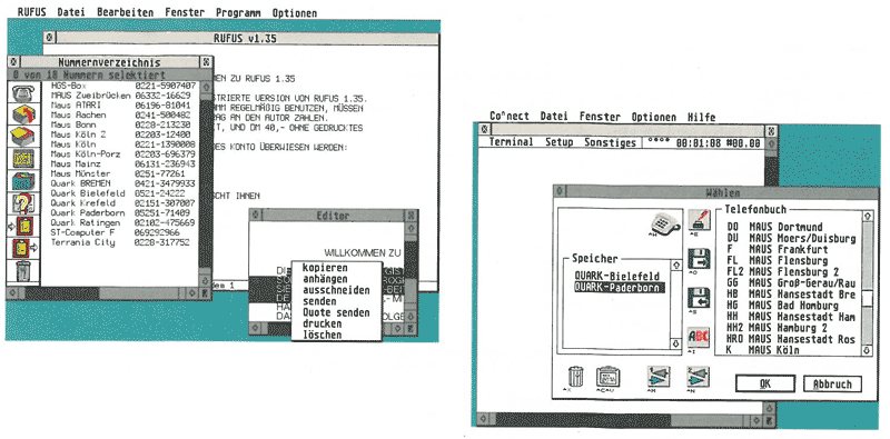 Auf dem ATARI-Sektor gibt es zwei Terminalprogramme, die einen besonders großen Anwenderkreis haben: Rufus und Connect jeweils Shareware-Produkte. Und noch etwas haben beide Programme gemeinsam: Vor nicht allzu langer Zeit gab es neue, im Funktionsumfang erweiterte Versionen. So liegt Connect inzwischen in der Version 2.2 vor, Rufus als Version 1.35.