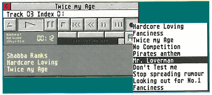 Ein Blick auf die Diskette zeigt einen CD-Player, der schon auf der CeBIT ’93 auf dem Stand von Color Concept zu sehen war. Der CD-Player hat alle wesentlichen Funktionen eines normalen Players. Auf Wunsch, kann der User die Musik-CD "beschriften". Die Software bietet die Möglichkeit, die einzelnen Titel in die interne Datenbank einzugeben, um so beim nächsten Zugriff den Volltexttitel im Bildschirm zu sehen. Auch eine direkte Titelanwahl per Mausklick ist dadurch besser möglich.